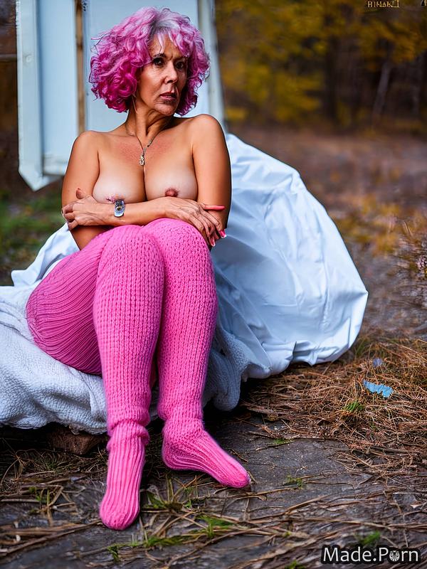 Get ready to view the amazing beauty of a nude elder woman who is 60 years old! Take in her short hair, pixie cut, and fuzzy socks. Her expression is one of confusion which pairs nicely with the pink hair cascading down her neck. Download her free nude photo now and experience her captivating beauty!