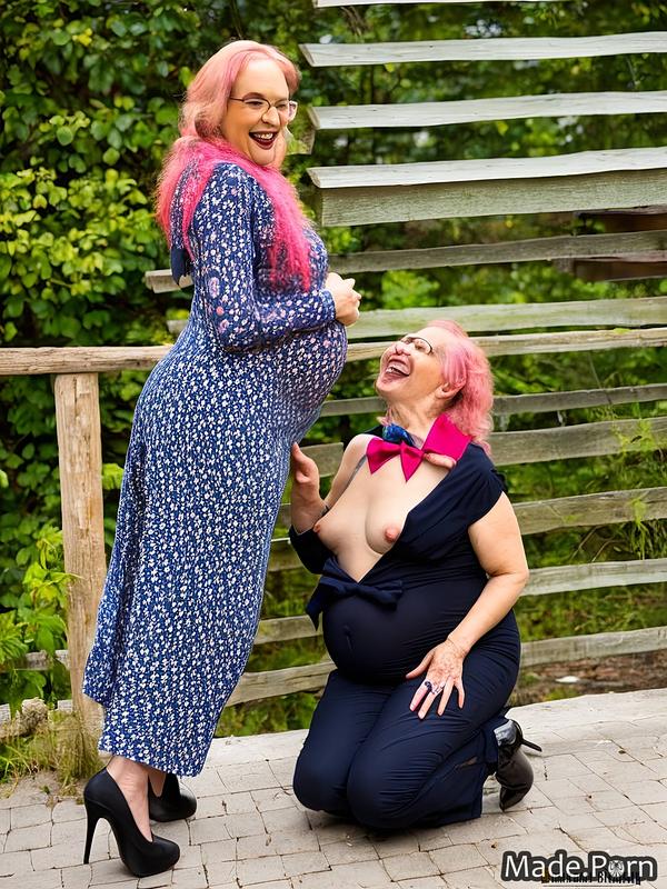 Take a look at the amazing pics of a 70+ YO Ukrainanian and pregnant woman in pink hair and a bow tie, laughing and posing naked and looking amazing! These pics will surely rile up your naughty desires, as this amazing and elegant woman will delightfully ignite your passionate fantasies! Enjoy!